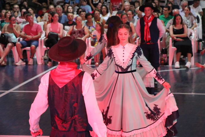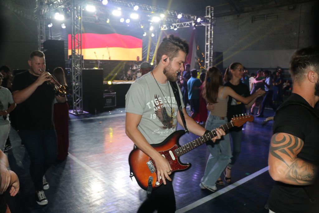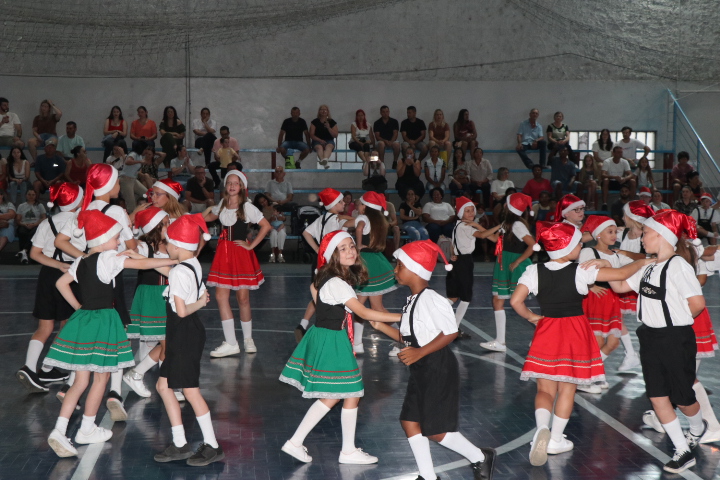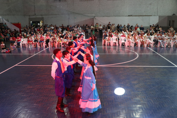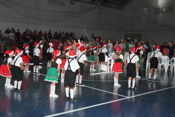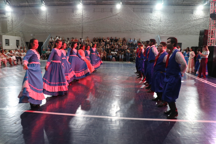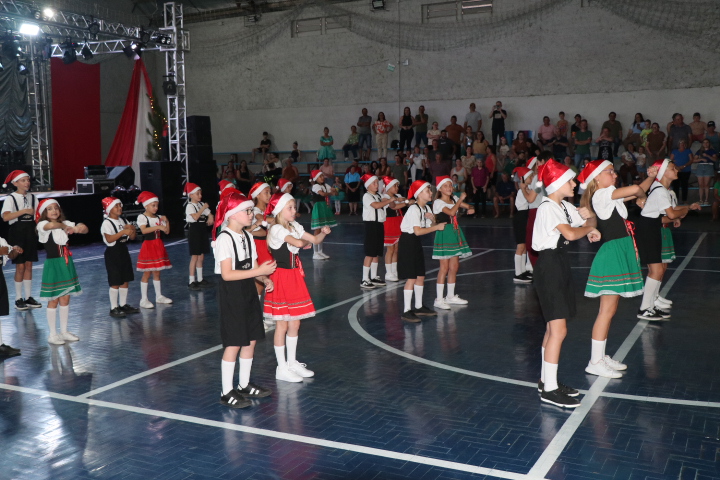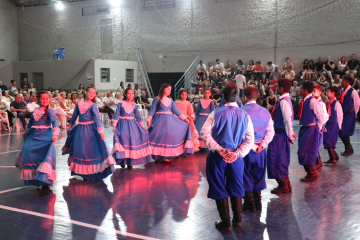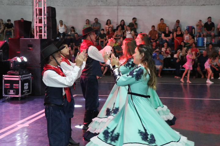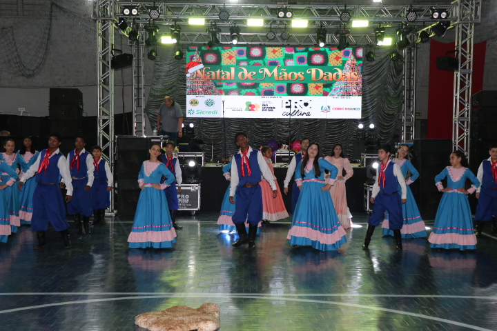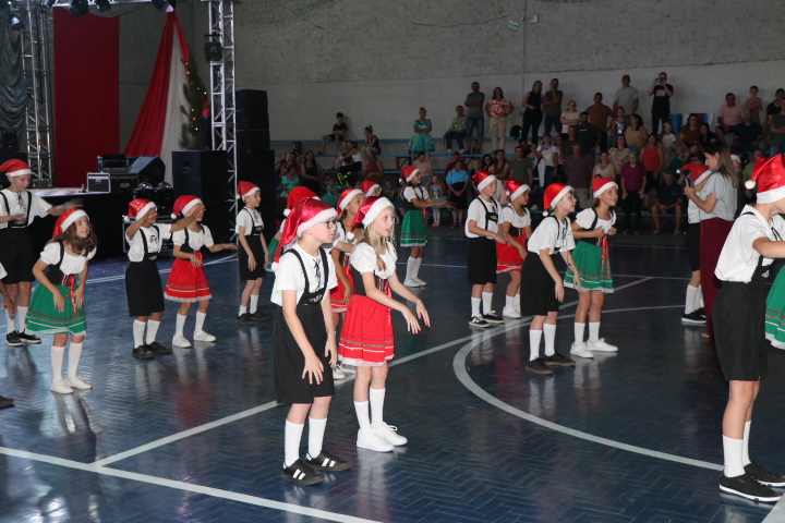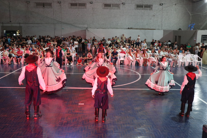 A abertura da noite ficou por conta do Grupo de Danças Alemãs da Escola Augusto Schultz. O grupo, que recentemente conquistou um importante título através de projetos sociais da Faculdade Antonio Meneghetti, reafirmou sua excelência com uma performance impecável e interativa, honrando as raízes germânicas do município.