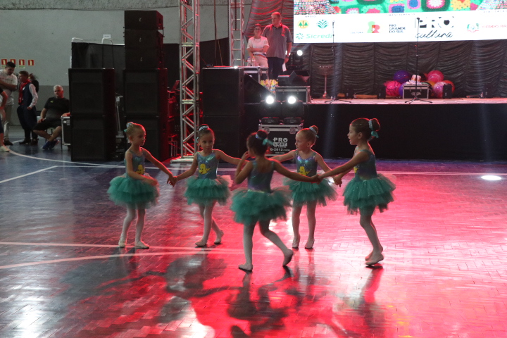 Encerrando a primeira parte de apresentações da noite, o Grupo de Ballet de Cerro Branco trouxe leveza e sofisticação. Com movimentos precisos e alta performance, as bailarinas transformaram a expressão artística em um momento de pura beleza visual.