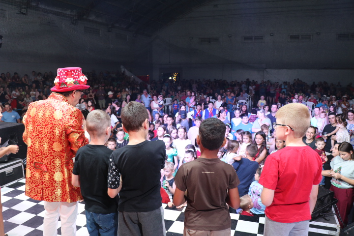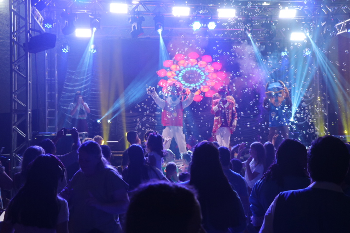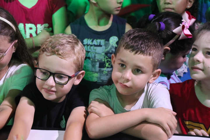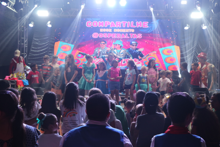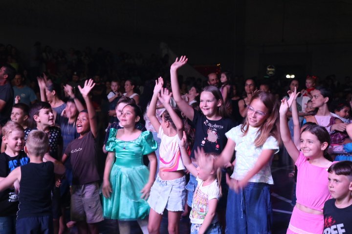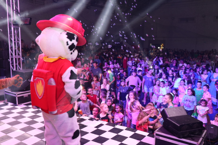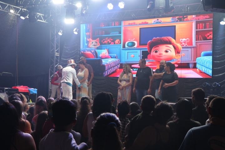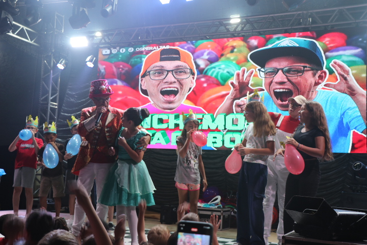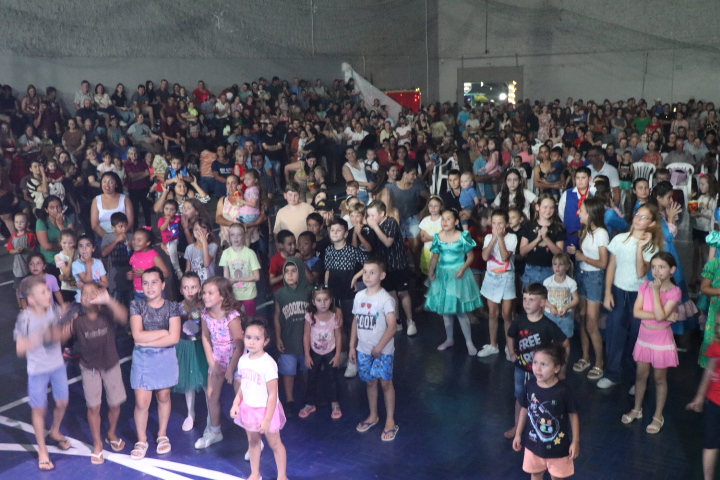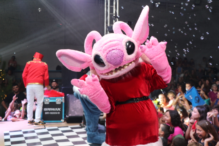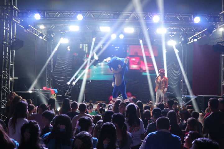 O entusiasmo tomou conta do ginásio com o show do grupo "Os Peraltas". Personagens icônicos como Mickey, Minnie, Sonic, Super Mario, Patrulha Canina, Stitch e Barbie transformaram o evento em um mundo de fantasia. Além da interação e alegria contagiante, o grupo distribuiu brindes e doces, fazendo brilhar os olhos das crianças presentes.