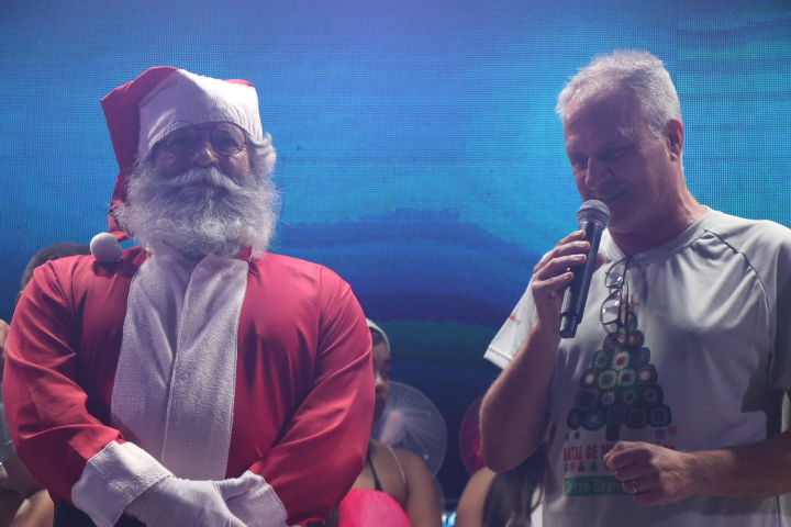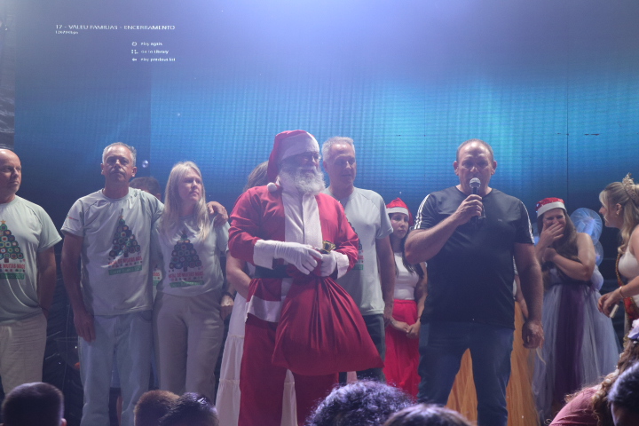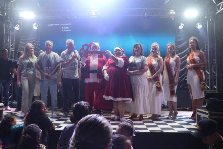 O ponto alto da emoção foi a chegada do Papai Noel. Em um gesto simbólico de hospitalidade e confiança, o prefeito Bruno Luciano Radtke e o vice-prefeito Paulo Vilnei Trindade Unfer, acompanhados pela administração municipal, entregaram as chaves da cidade ao Bom Velhinho. Após o protocolo, o Papai e a Mamãe Noel receberam as crianças em um espaço reservado para a entrega de presentes.